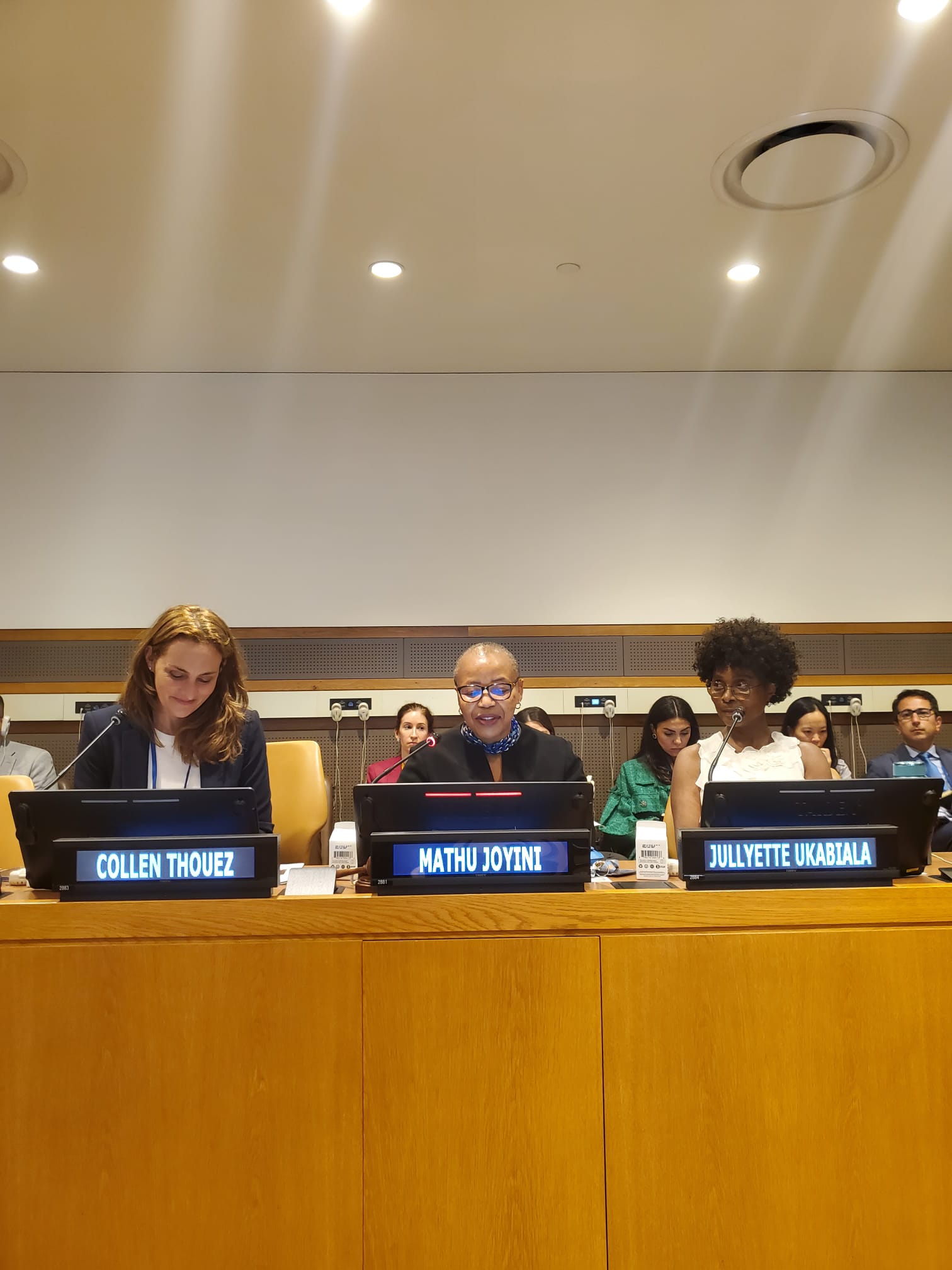 Ms. Jullyette Ukabiala, Secretary of the Fourth Committee and Senior Intergovernmental Affairs Officer, followed Ms. Joyini’s introduction with a schedule of the Fourth Committee’s work. She provided advice to the delegates when drafting statements for speakers and echoed the previously given points about the usefulness of E-Delegate.