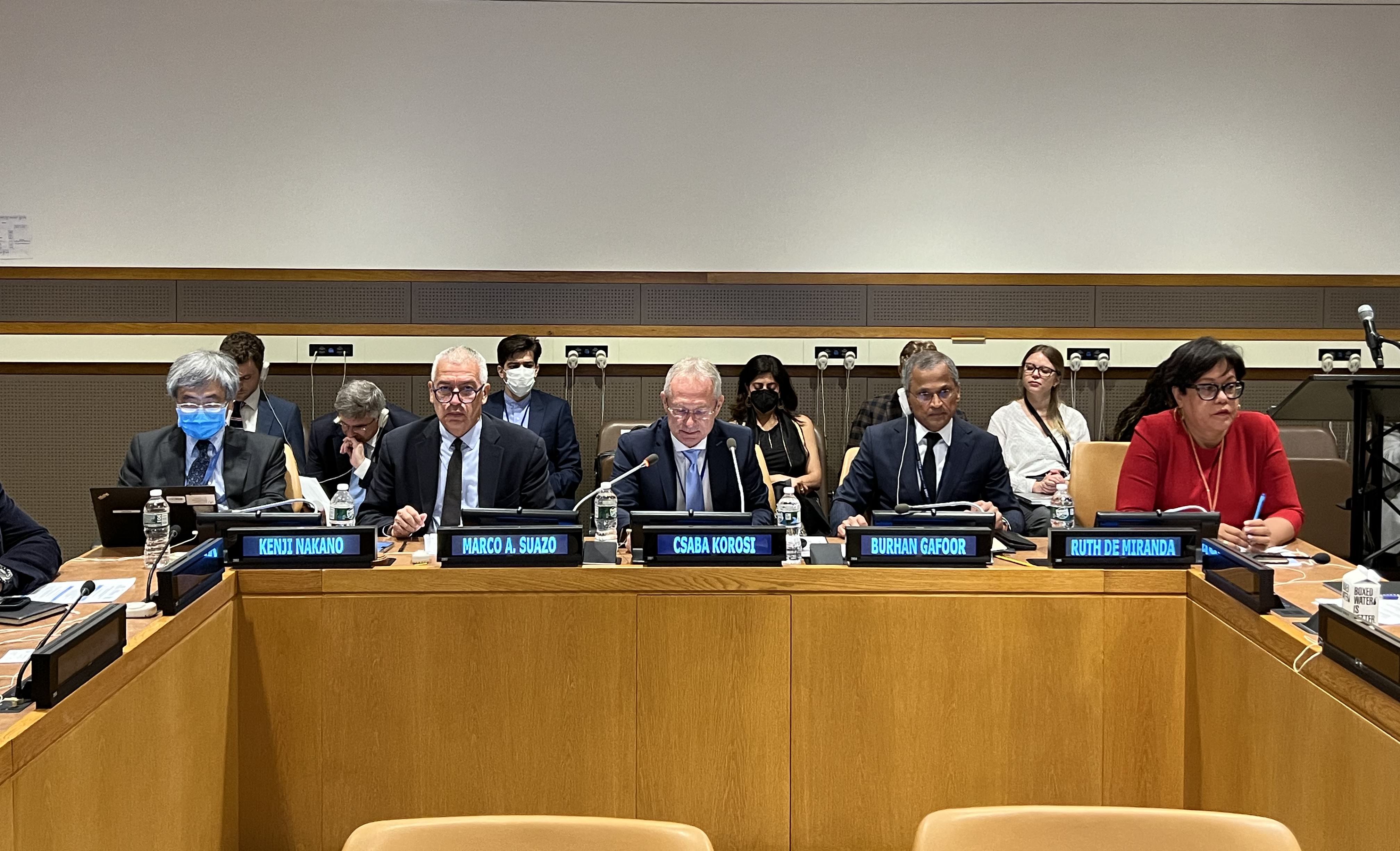 Mr. Gafoor thanked Mr. Seth and welcomed H.E. Mr. Csaba Korosi, President of the 77th General Assembly, acknowledged Ms. Ruth de Miranda, Director of the General Assembly and ECOSOC Affairs Division in the Department for the General Assembly and Conference Management, Mr. Marco Suazo, Head of the UNITAR New York Office, permanent representatives, and delegates. He mentioned how multilateralism is under pressure and being tested and issues, such as climate change, ocean, outer or inner space and others, can be solved if we work together. Mr. Gafoor advised the delegates to keep an open mind and understand the position of the other countries, needs, and look for mutual benefit solutions and live with compromises.
