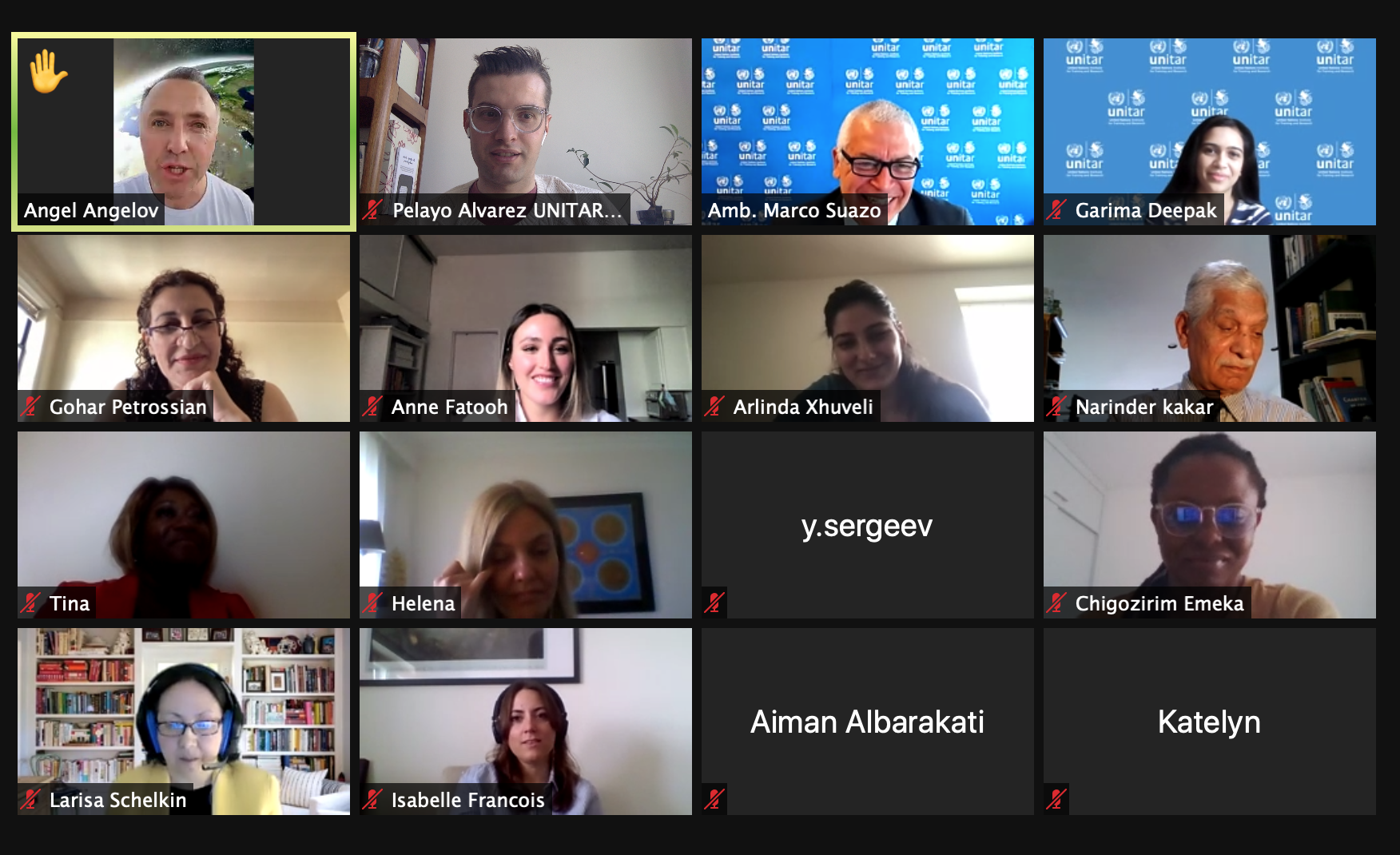 H.E. Mr. Narinder Kakar congratulated the UNITAR team for organizing the programme and the students for their active participation and enthusiasm in the classes. H.E. Dr. Yuriy Sergeyev observed that the group this year was one of the best because the students were well-motivated, well-dedicated, and demonstrated that they had a good knowledge base. His part was merely to guide them and share his experience of 9 years at the UN and to highlight the actions that make the UN the main actor in global governance as well as the gaps in the management which are to be improved. Dr. Angel Angelov remarked that the sessions were perfectly organized despite the ongoing pandemic and mentioned that brainstorming with the students was fascinating.