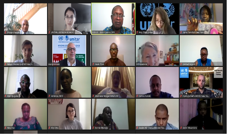 28 September – 2 October 2020, New York, USA (Virtual) – The United Nations Institute for Training and Research (UNITAR) continued its training series for the newly elected members of the Security Council. On October 2020, UNITAR successfully completed its five-day virtual training for the delegates from the Permanent Mission of Kenya. Kenya was elected as a member of the Security Council in June 2020 by the members of the General Assembly along with India, Norway, Ireland and Mexico. Kenya will serve a two-year term in the Security Council starting 1 January 2021.