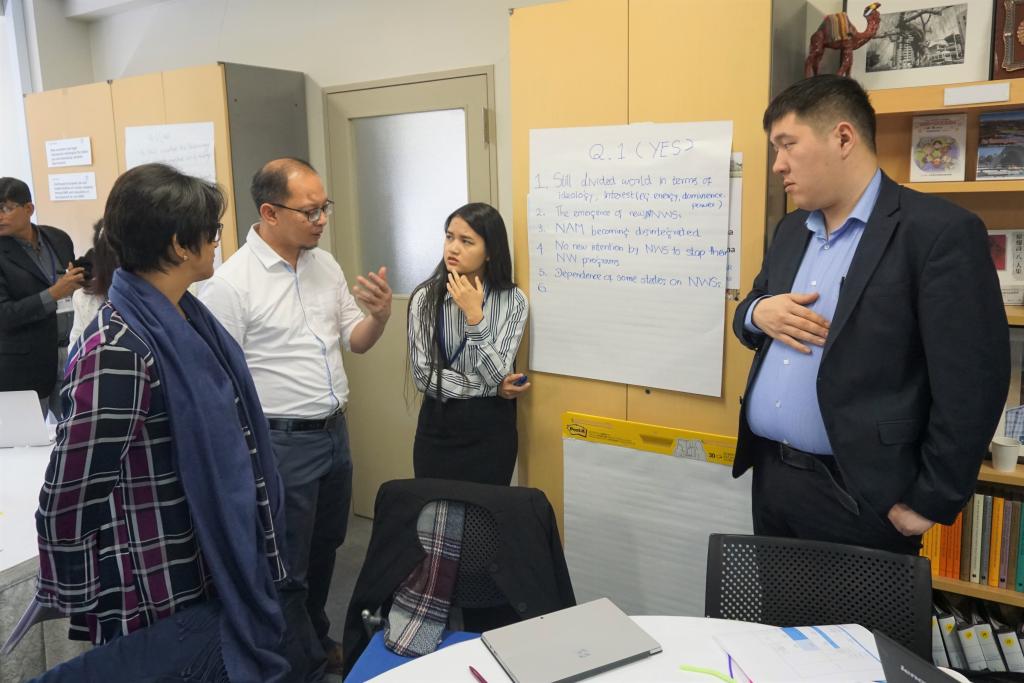 The training included discussion of various recent developments in nuclear disarmament, such as the TPNW, which many participants identified as “highly relevant to their current role” in a pre-workshop needs assessment. Efforts for nuclear disarmament on the Korean Peninsula were also covered (a summit between President Trump and Chairman Kim happened to be taking place concurrently with the session). Additionally, Resource Persons explained the current status and impacts of other disarmament and non-proliferation treaties, including the NPT, Intermediate-Range Nuclear Forces Treaty (INF), and Strategic Arms Reduction Treaties (START).