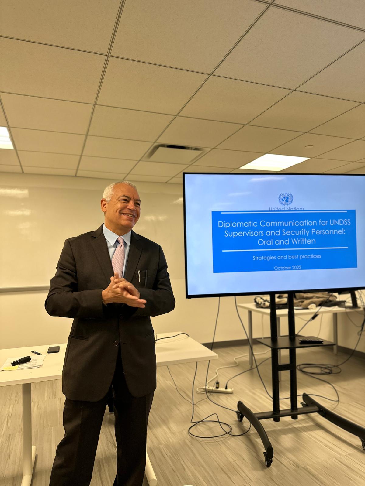 20 October 2022, New York, USA – The United Nations Institute for Training and Research (UNITAR) New York Office offered a half-day training course on diplomatic communication skills to 29 experienced security supervisors and personnel of the United Nations Department of Security & Safety (UNDSS).