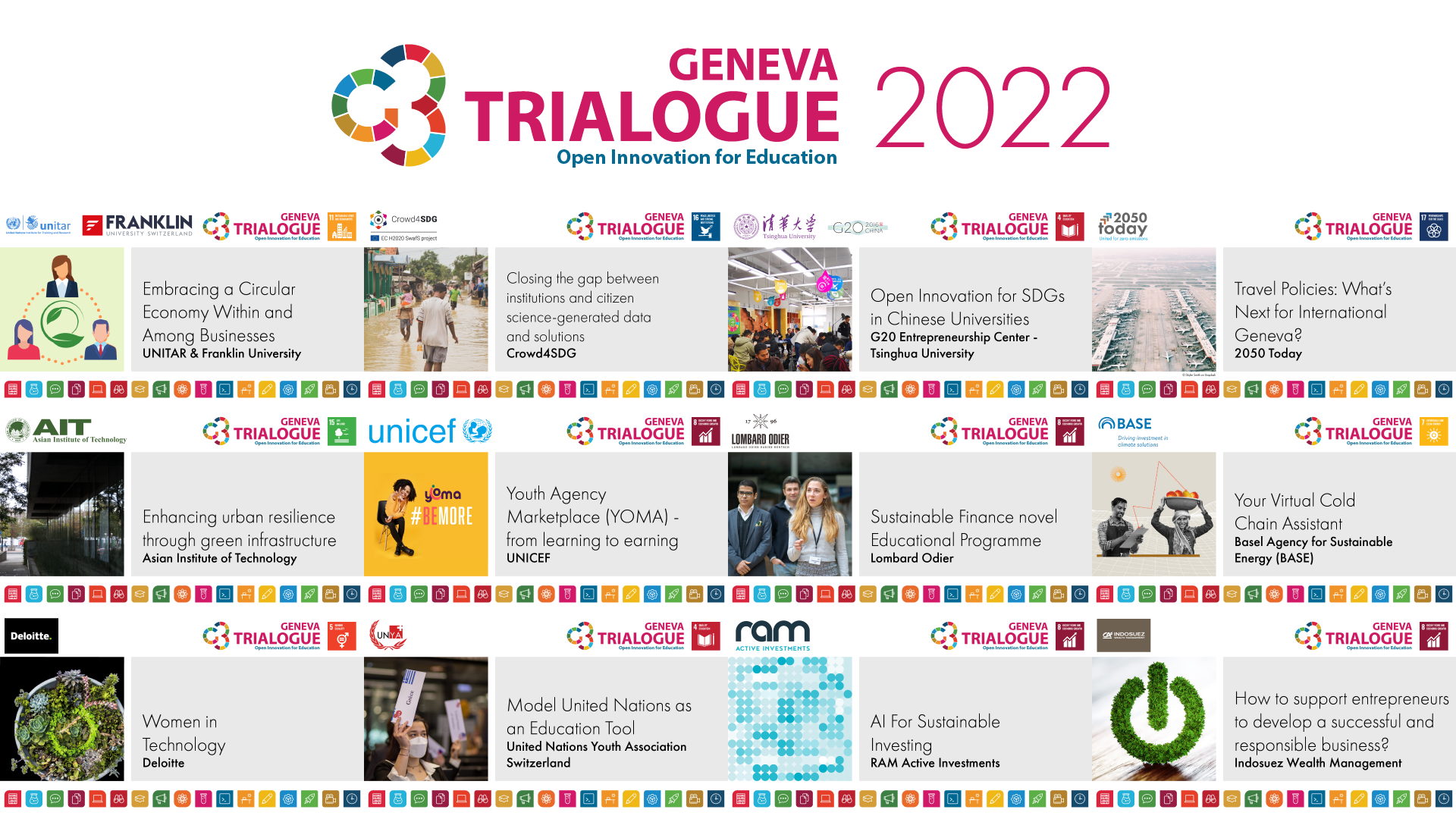 In a novel hybrid format, 12 lead partners from academia, international organizations, and the private sector from Geneva and around the world, brought their sustainability challenges under the 2022 theme, and developed practical outcomes of new educational and learning approaches that culminate in positive social and environmental impact, through an engaging Discovery and Design process.