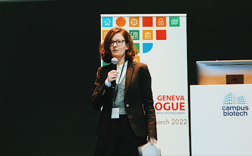An engaging panel discussion followed around the 2022 theme, with panellists Yao Ydo, Director of UNESCO’s International Bureau of Education, Mireille Betrancourt, Dean of Faculty of Psychology and Sciences of Education of the University of Geneva, Dannie Ivanova, Partner at Deloitte Consulting AG, and Merlyn Hurtado representing the youth voice as Data Scientist, Agriculture engineer, and Master student in Technologies and Strategies for Development at the Learning Planet Institute.