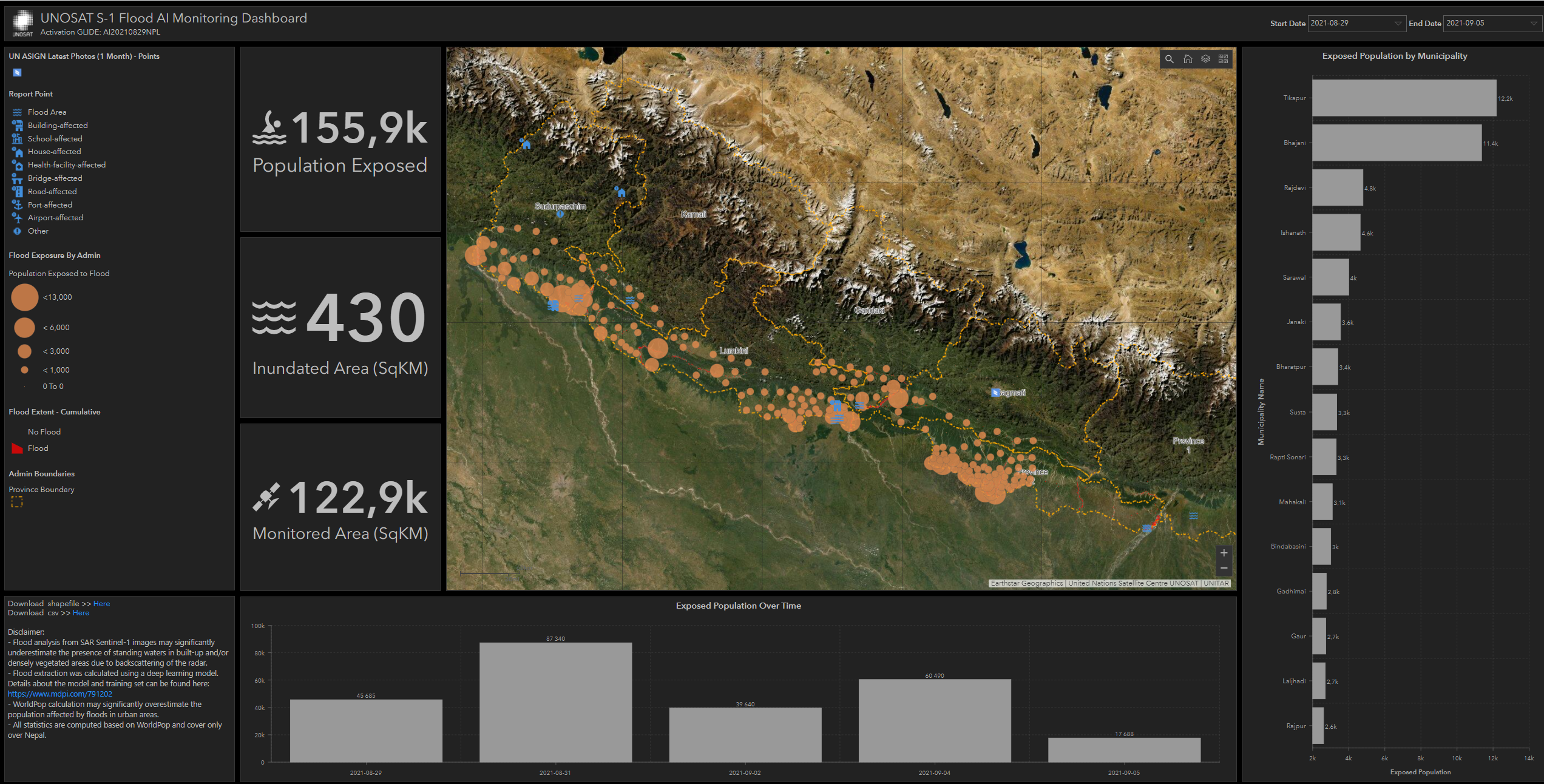 “The UNOSAT FloodAI S-1 Dashboards was a very welcome innovation where the satellite imagery-derived information was integrated with ground information in real time. It helped the decision-maker to understand the situation on the ground so our preparedness and response plan was implemented effectively”, explains Mr. Rajbhandari.