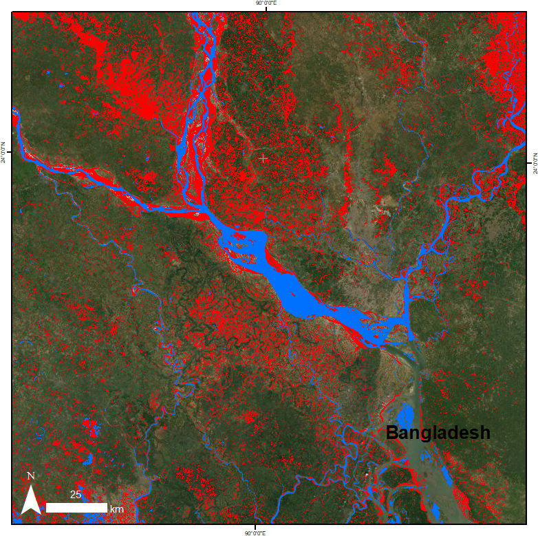 UNOCHA, in close coordination with other UN entities and the Bangladesh authorities, contacted UNOSAT on 13th July 2020 to assess the needs after monsoon rains flooded a large part of the country, in particular along the Brahmaputa river and in the northeastern parts of the country in the Sylher district. To respond to this activation UNOSAT decided to trigger the International Charter: Space and Major Disasters, and applied both automated and semi-automated analysis methods.