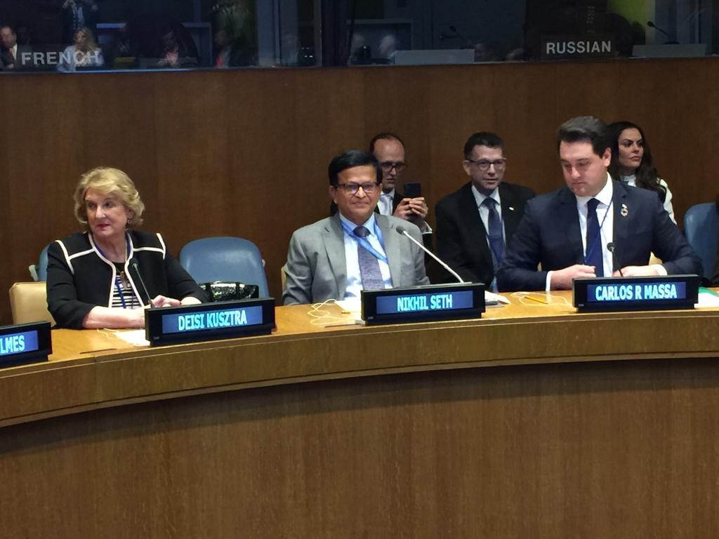 Later that week, on Friday 12, Mr. Nikhil Seth and H.E. Mr. Marco Suazo met with ASG Mr. Fabrizio Hochschild, Assistant Secretary-General for Strategic Coordination and Special Adviser on the Preparations for the Commemoration of the United Nations’ 75th Anniversary. During the meeting, Mr. Hochschild shared the plans to inspire forward-looking discussions in all sectors of the world on directing emerging risks and opportunities. Mr. Hochshild also explained how these plans of dialogue would strengthen collective action to build the program of the 75th United Nations Session titled “future we want, the UN we need”.