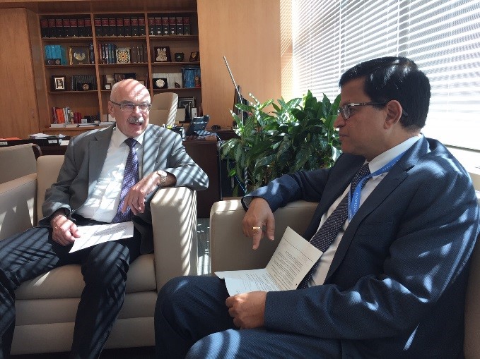 16 July 2019, New York, NY, USA – During the work visit of the Executive Director of UNITAR, Mr. Nikhil Seth, the United Nations Institute for Training and Research completed several meetings with UN officials on the 10th, the 15th and the 16th July. Mr. Seth met with the Deputy Secretary-General, Ms. Amina Mohammed, with the CEO of Anheuser-Busch InBev, Mr. Carlos Brito and with the Under-Secretary-General for Counter-Terrorism, Mr. Vladimir Voronkov.