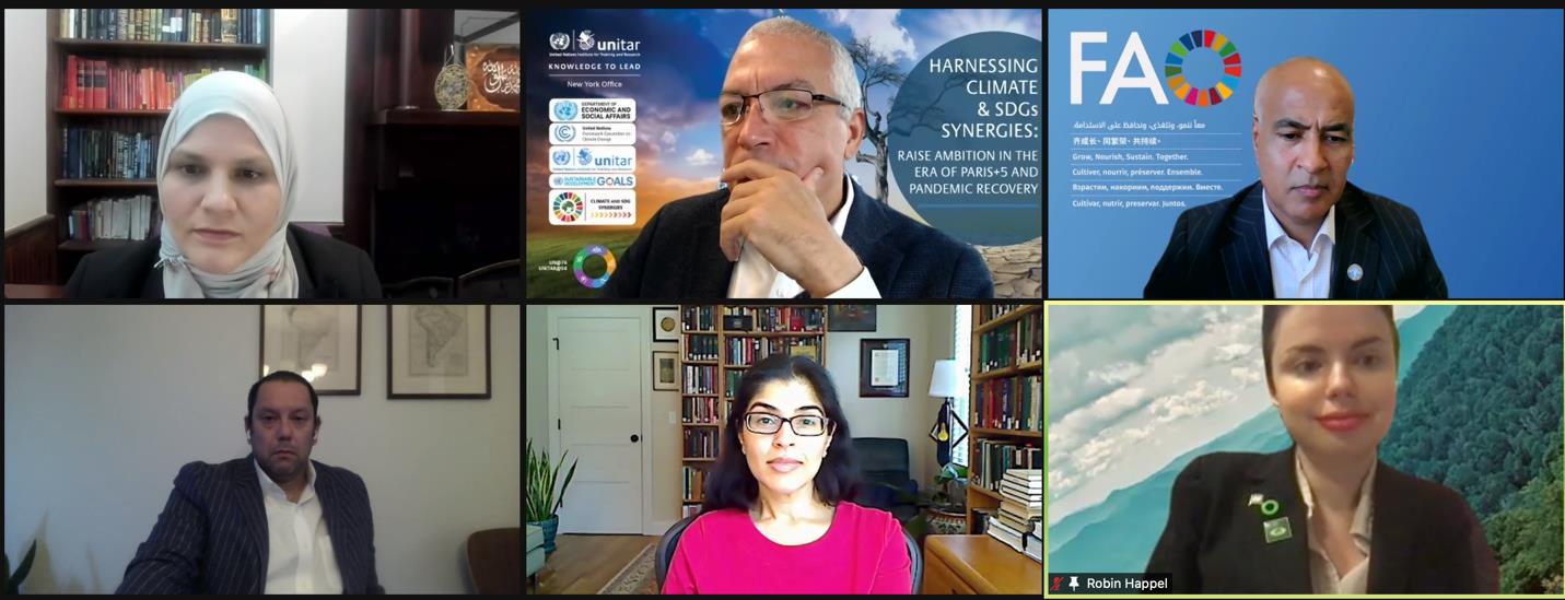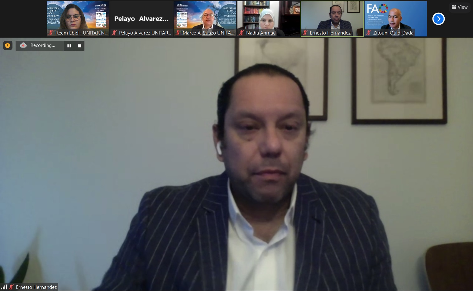 Ms. Ahmad discussed how this course is meant to highlight the issues and concerns from absence of agriculture in the 2030 agenda to find solutions and ways to overcome such issues. She mentioned how this session is a way of looking for ways to provide solutions for governments and international organizations to deploy new production capacities to be able to improve innovation and farming techniques. Ms. Ahmad then yields the floor to Dr. Zitouni Ould-Dada, Deputy Director, Office of Climate Change, Biodiversity, and Environment, Food and Agriculture Organization.