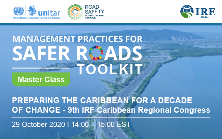 04 December 2020, Geneva, Switzerland – UNITAR’s Road Safety Global Training Initiative and the International Road Federation (IRF) partnered to deliver a series of Master Classes on the “Management Practices for Safer Roads Toolkit” in the framework of regional conferences.