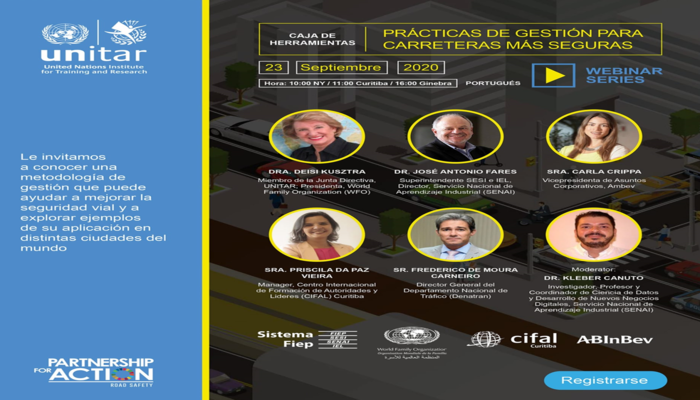 23 September 2020, Geneva, Switzerland – UNITAR’s Division for People hosted the 4th session of the “Webinar Series Management Practices for Safer Roads” to kick-off Brazil’s National Road Safety Week and to raise awareness about practical interventions and best practices that contribute to improve road safety.