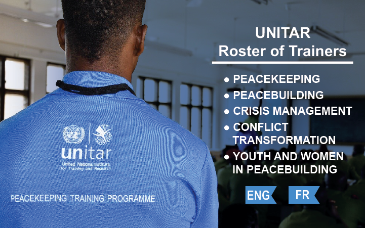 In February 2020, UNITAR Division for Peace launched a roster of trainers to consolidate the best expertise and knowledge available globally in the fields of peacekeeping, peacebuilding, crisis management, and conflict transformation. Applications are accepted through the online questionnaire, accessible through the links in the respective vacancy announcements. Vacancy announcements are grouped by thematic areas, with each group being published every two-three weeks.