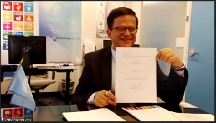 26 April 2021, New York, United States of America and Jeddah, Kingdom of Saudi Arabia – The United Nations Institute for Training and Research (UNITAR) and the Islamic Development Bank (IsDB) have signed a Memorandum of Understanding (MoU) and a Joint Action Plan to strengthen cooperation in IsDB member countries.
