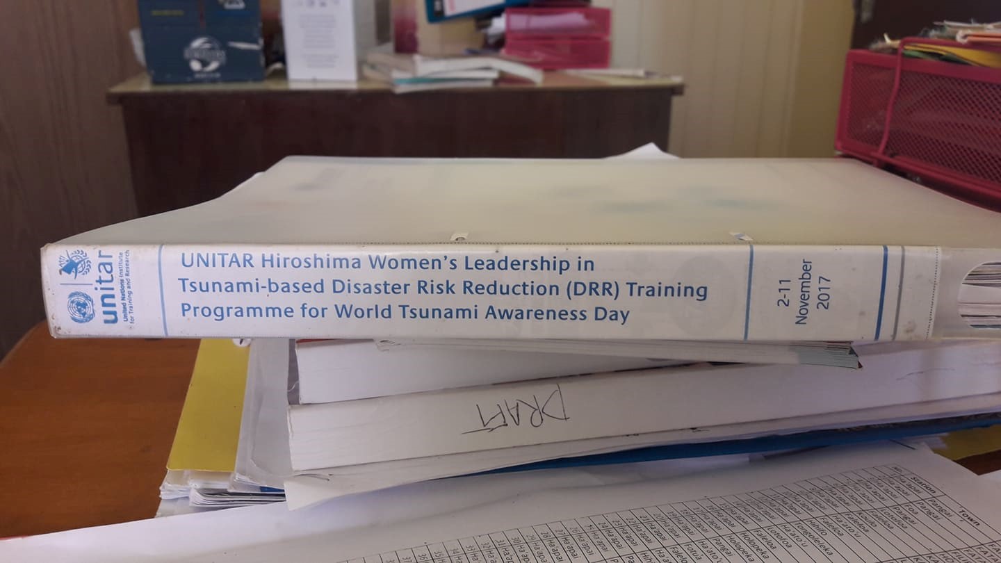 Lu’isa kept her notes and manuals from her UNITAR training and uses them to inform her work. “I keep referring to my materials given to us during the training in Japan for ideas for my activities,” she shared.