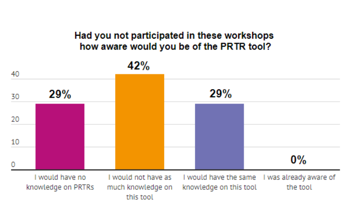 All survey respondents had indicated that they either “strongly agreed” or “agreed’ that they found the workshops useful and relevant to their job, and that the information was new to them. The majority of respondents further replied that they would have no or not as much knowledge on PRTRs if they had not participated in the workshop. Almost all had also responded that the knowledge and skills they acquired are important to success in their jobs.