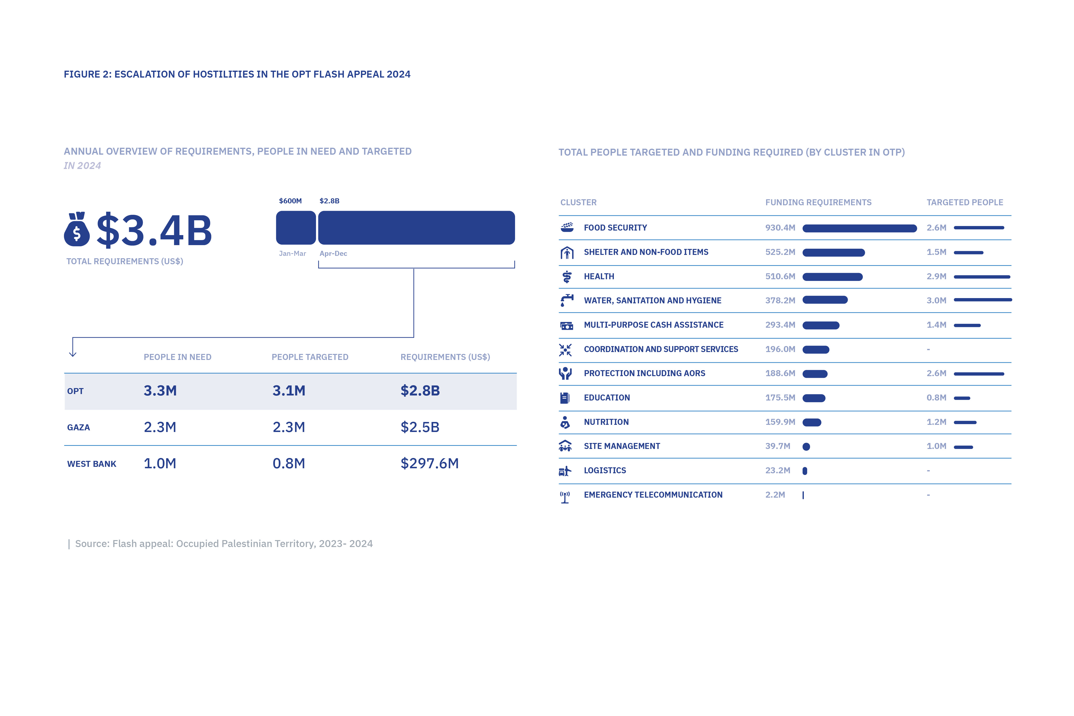 - United Nations Office for the Coordination of Humanitarian Affairs (UNOCHA). (2024, April 17). Flash appeal: Occupied Palestinian Territory, April - December 2024. Retrieved from https://www.ochaopt.org/content/flash-appeal-occupied-palestinian-territory-2024