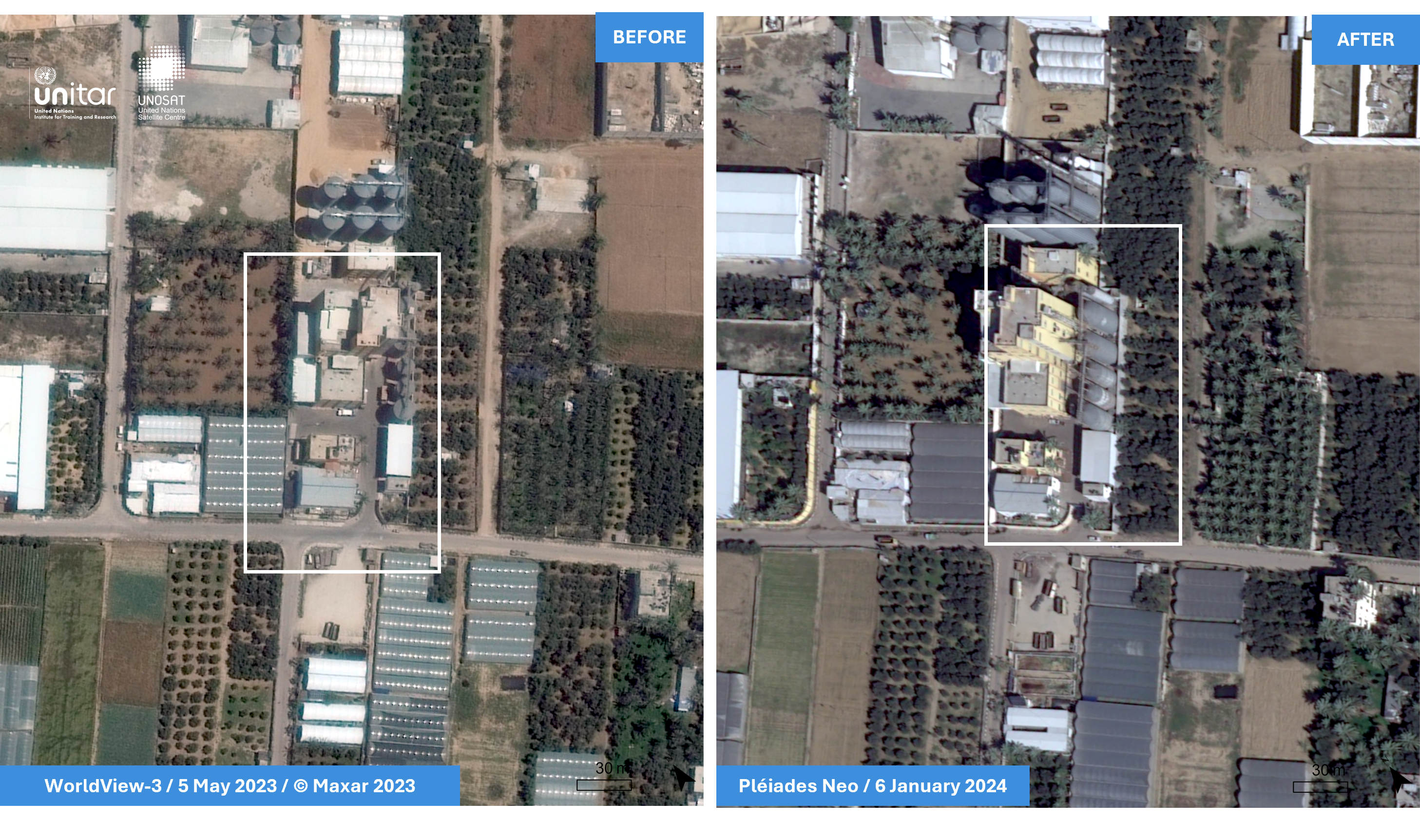 - Strategic Recovery Planning: UNOSAT’s damage assessment enabled UNIDO to plan for early recovery efforts, especially for vital industries such as food and pharmaceuticals. ELFARRA explained, "For vital industries such as food and pharmaceutical, we can assess which factories that we can re-engage when the situation allows. This has been regularly utilized to engage with the private sector for identification of the level of interventions needed for these facilities to resume operations under the different scenarios."