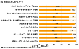 アンケート調査によると、修了生の大多数(89%)が、研修で取得したハードスキルとソフトスキルの両方を職務に活用していると回答しており、本プログラムの成果を示しています(図2参照)。これらの知識やスキルについてより仔細にみると、チームワーク、リーダシップスキルと組織ニーズアセスメントの活用度が非常に高い結果となりました。活用事例として、事業パートナー選定プロセスにおけるニーズの把握、洪水発生時の国内避難民(IDP)キャンプにおける緊急対応、教育カリキュラムへの取り入れなどが挙げられました。