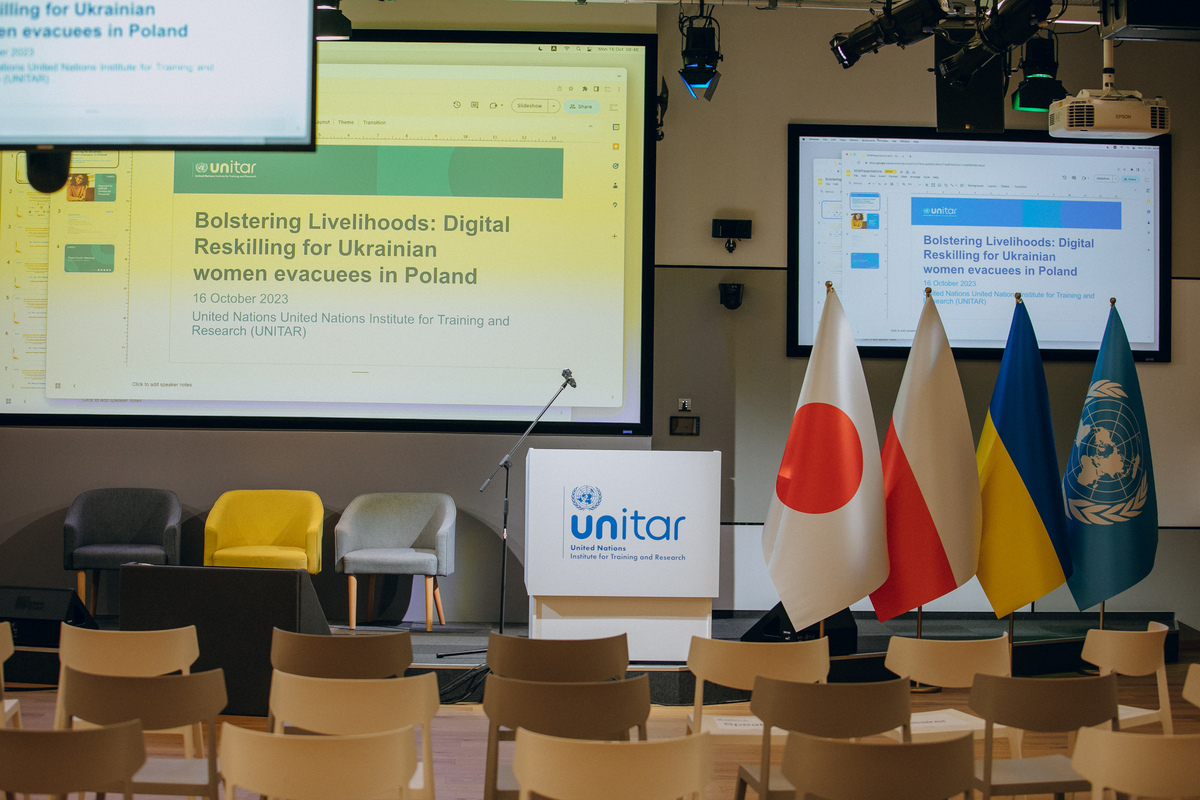 Цей форум завершує навчальну програму ЮНІТАР «Зміцнення засобів до існування: програма цифрової перекваліфікації для українських евакуйованих жінок у Польщі». Понад 40 найуспішніших учасниць обговорюватимуть теми, які вони вивчили, а саме: аналітику даних, кібербезпеку, географічні інформаційні системи, цифрову графіку та веб дизайн.