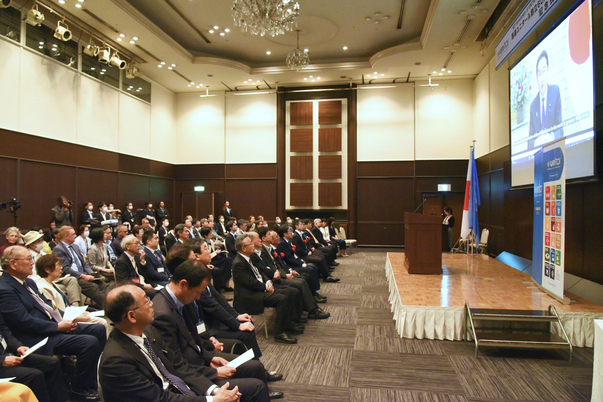 東京会場には林芳正外務大臣や現職国会議員の皆様、駐日外国公館ご関係者、駐日国際機関ご関係者など約100名、広島会場には湯﨑英彦広島県知事、松井一實広島市長などご関係者約100名が出席されました。また、広島の式典後に開催された祝賀会には、為末大ユニタール親善大使や国連ユニタール協会の皆様、ユニタールサポーターの皆様など200名以上が出席されました。