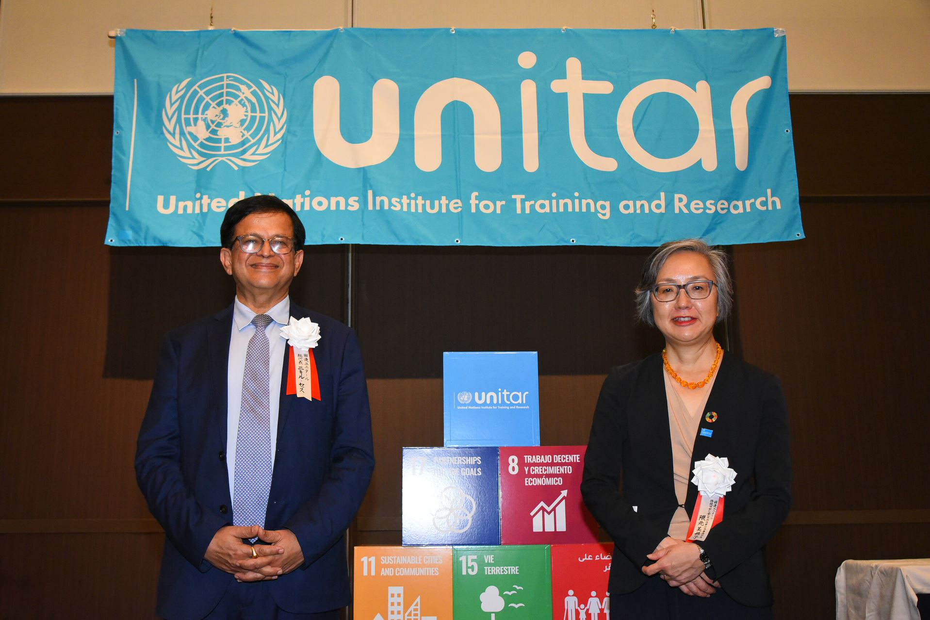 「人づくりをミッションとするユニタールはますます重要な役割を担うことになります。ユニタールがこの幅広い開発課題における人づくりを通じまして、SDGs達成に貢献することを期待しています。日本政府は引き続きユニタールとの緊密な連携のもとで持続可能な開発に貢献をしていく考えであります。」 ‐林芳正外務大臣