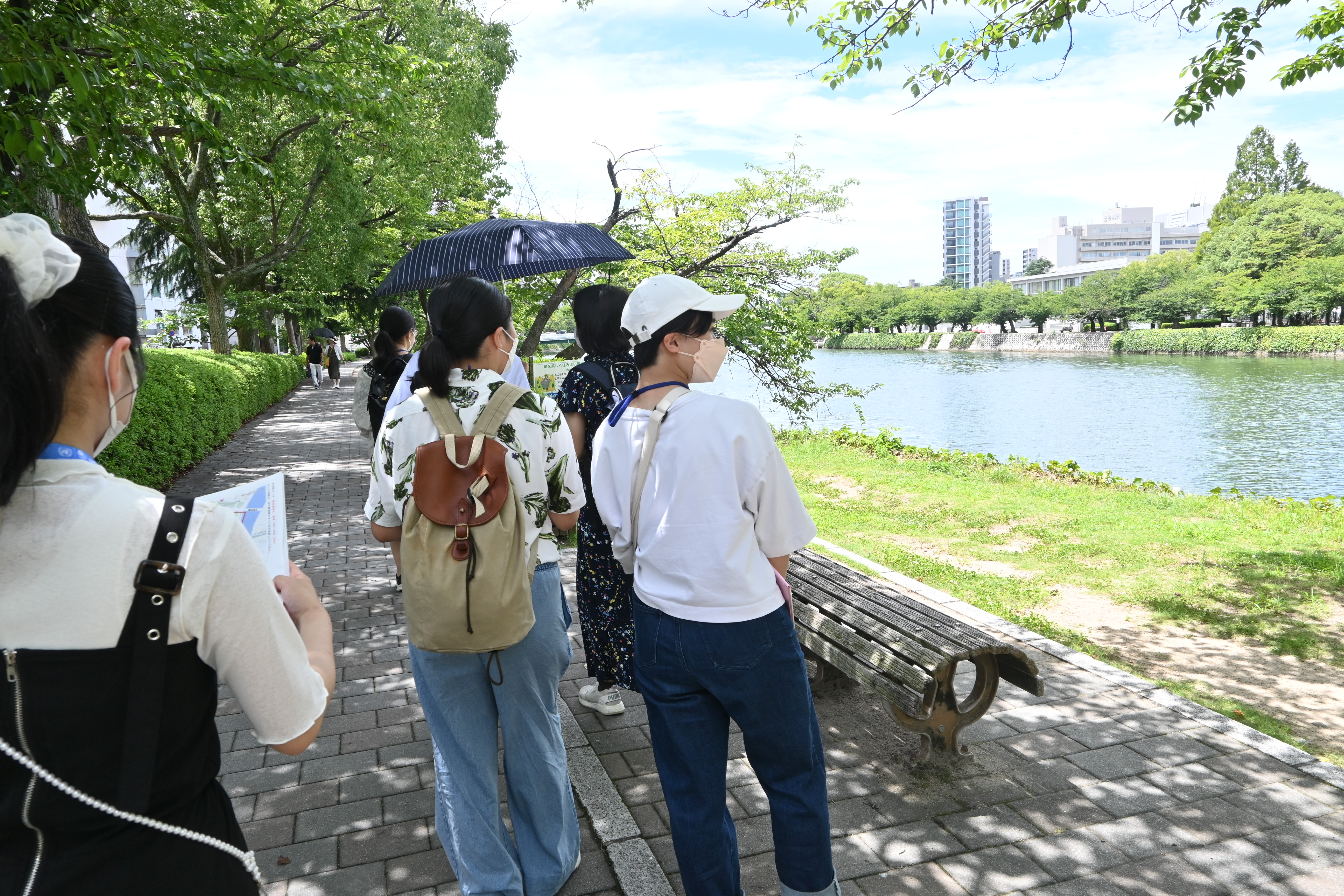 過去2回の研修はコロナ禍でオンラインでの研修のみとなりましたが、2022年のプログラムはオンラインでの研修と対面のワークショップを組み合わせたハイブリッド型のプログラムでした。7月31日のワークショップでは、広島市内をグループごとに歩き、身近な街の問題点を見つけ出すことから始めました。その問題点と関連するSDGsに焦点を当て、誰一人取り残さない理想の街を実現するための持続可能な取り組みを考案し、発表。お年寄りや障がいのある人が住みやすいか、ゴミが分別・回収される仕組みが確立されているか、自然と共生し環境に配慮できているかなど、様々な観点から自分たちの街を改善するヒントを得ました。