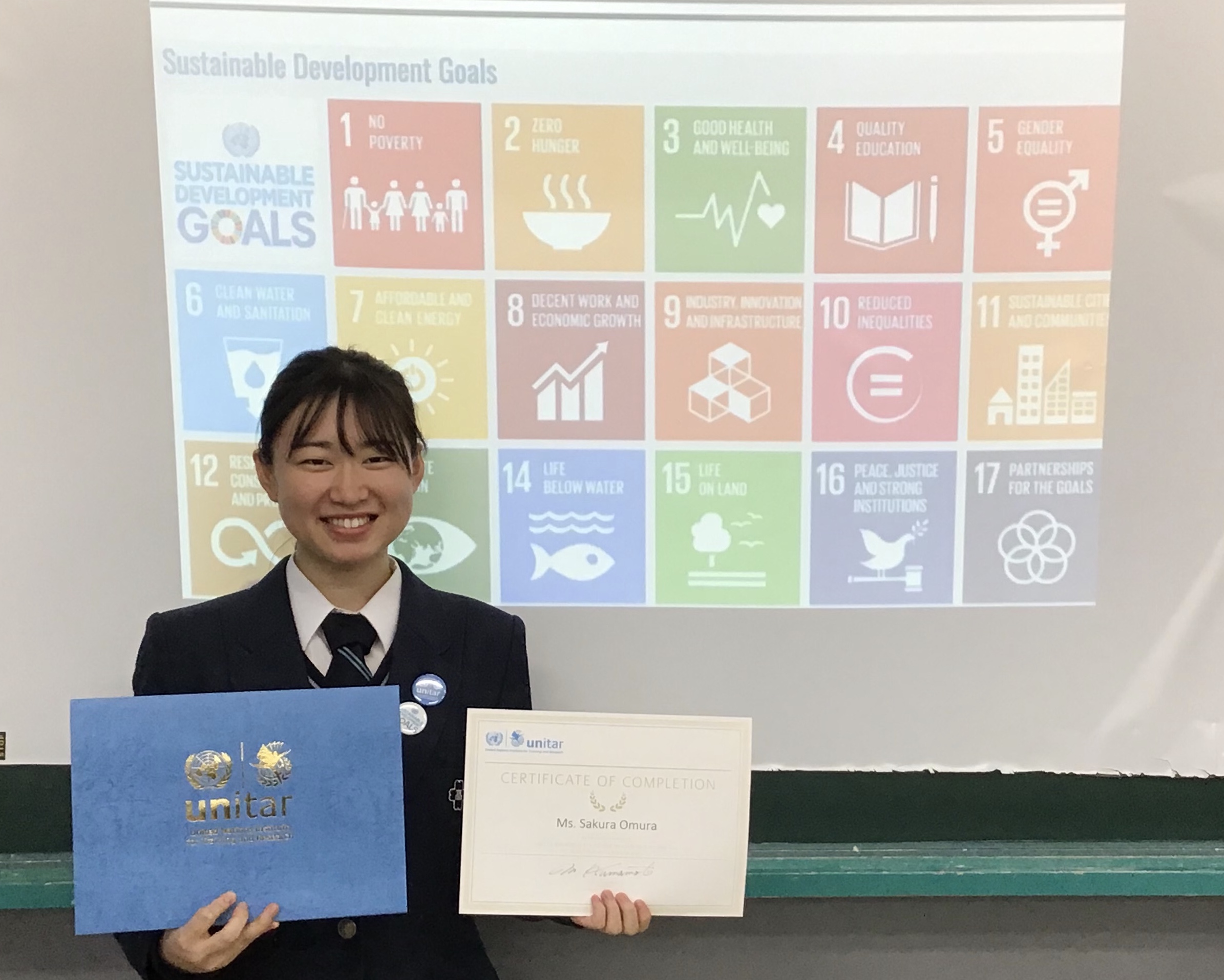 「勇気を持って一歩を踏み出せば、視野が『世界』に広がった。絶対に挑戦する価値がある」と語る、武田高校2年の大村桜子さん。2020年度の国連ユニタール青少年大使として活躍しました。