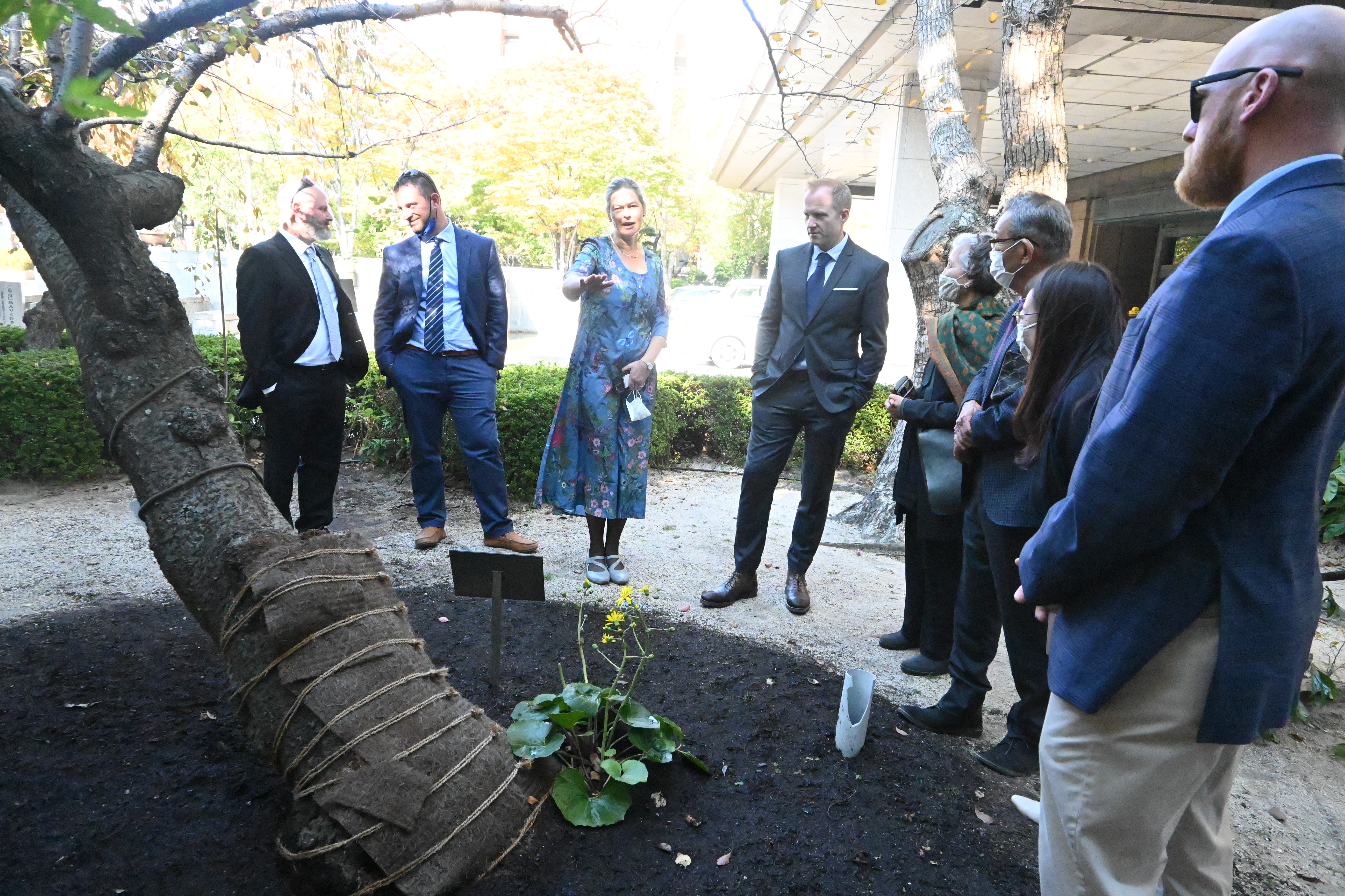 2022年11月、米国の植物学者と植物園の専門家が、広島(日本)にてグリーン・レガシー・ヒロシマを訪れ、原爆を生き残った樹木、”被爆樹木”の調査を実施しました。具体的には、グリーン・レガシー・ヒロシマの庭師長へヒアリングを行い、被爆樹木が原爆被害から生き残った植物学的な要因を調査し、被爆樹木の成長条件について学ぶなど、樹木についての理解を深めました。グリーン・レガシー・ヒロシマとユニタールは、被爆樹木を守りながら、種や苗木を世界中へ送り届け、世界の平和と生物多様性を推進するために共に活動しています。