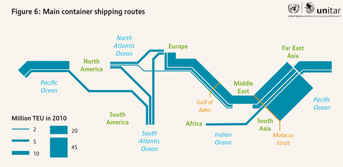 With studies indicating a significant shift of the centre of gravity for marine activities to Asia, finding solutions to reduce or end piracy is not only a major security issue, but an important economic factor. With changing climatic conditions at high latitudes and medium-to-low-income countries in Asia experiencing the largest growth per capita, additional transport routes may be explored, including combined pipe-lines and secure area marine shipping routes.