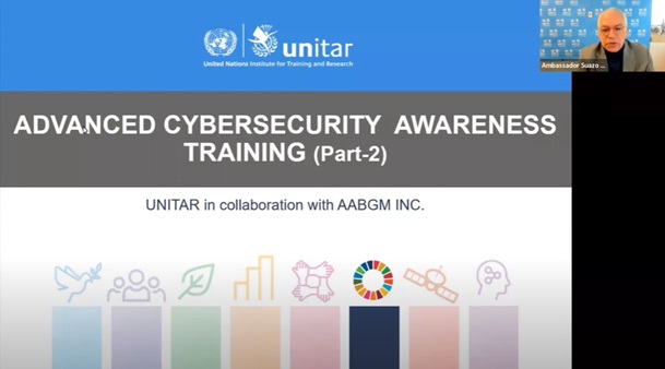 4 May 2022, New York, United States (Virtual) – The United Nations Institute for Training and Research (UNITAR) New York office, in partnership with AABGM Inc. - a Microsoft and EC Council certified leading company in the Cybersecurity field, kickstarted the event on Cybersecurity Awareness Training (Session 2) - Advanced Cybersecurity.