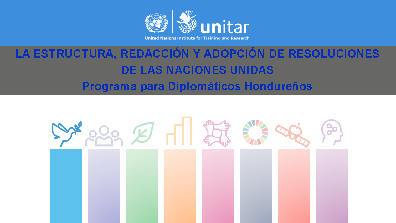 30-31 Agosto 2022, Nueva York, USA – El Instituto de Naciones Unidas para la Formación e Investigación (UNITAR), oficina de Nueva York, organizó el taller sobre Redacción de Resoluciones de manera virtual para apoyar a los diplomáticos hondureños. Atendieron más de 100 diplomáticos de carrera de la Secretaría de Relaciones Exteriores y Cooperación Internacional desde sus diferentes embajadas, consulados y oficinas acreditadas, los cuales contribuyeron a que las sesiones de dos días marcaran un fructífero programa.