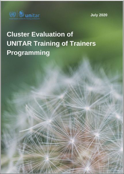 A cluster evaluation of six UNITAR training of trainer (ToT) related projects implemented between 2011 and 2016 was undertaken to assess the relevance, effectiveness, efficiency, impact and sustainability of programming to strengthen capacities of learning centres in developing countries. The primary purpose of the evaluation was to identify factors contributing to or hindering successful implementation and achievement of results, and to issue recommendations and lessons on how to strengthen capacities of learning centres, including the identification of approaches that work well and the reasons why.