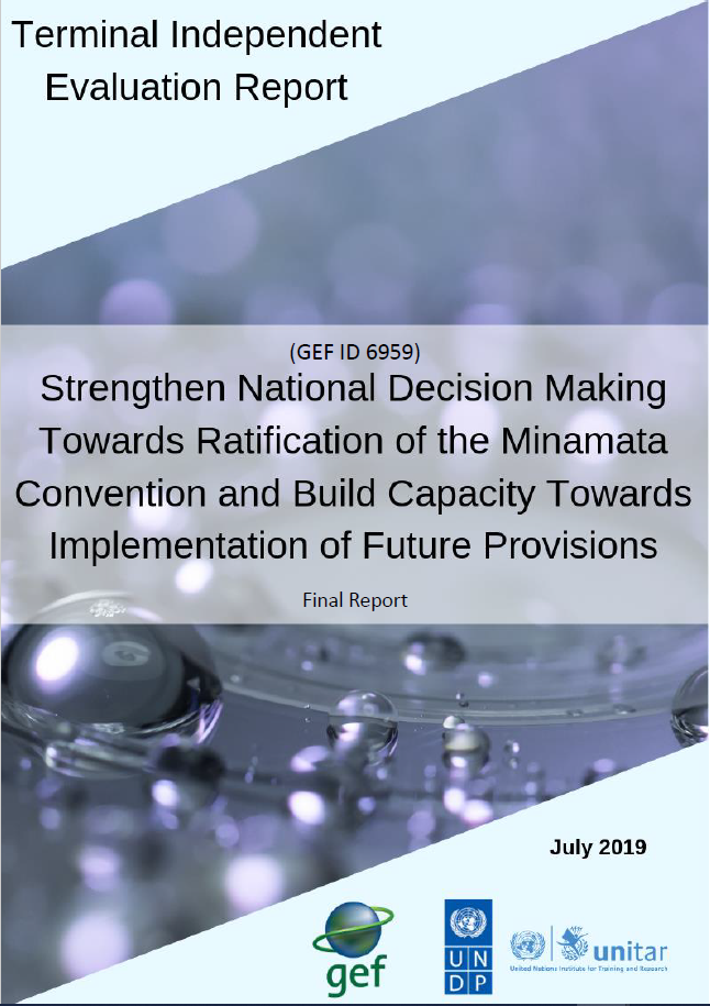 An Independent Evaluation of the “Strengthen National Decision Making Towards Ratification of the Minamata Convention and Build Capacity Towards Implementation of Future Provisions” project was published in October 2019. Using a mixed-methods approach that was gender and human rights sensitive, the evaluation included a review of documents, survey, interviews and focus group discussions. The evaluation faced several limitations, namely no mid-term evaluation that was originally foreseen, no country visits, unavailable information and survey constraints. The degree of subjectivity in interpreting the rating scale for the evaluation criteria was also a limitation.