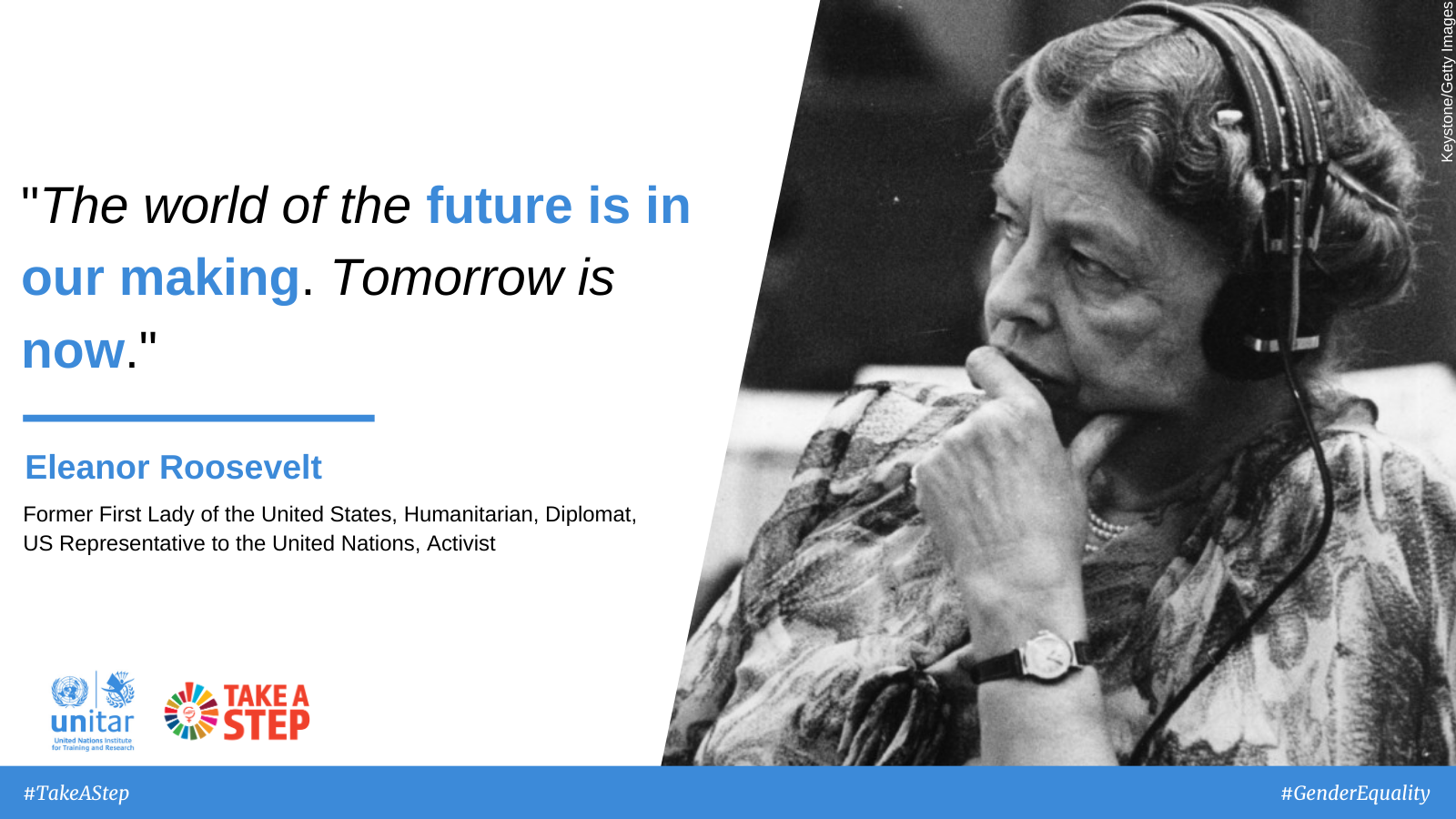 Therefore, starting on 6 March 2020, UNITAR will launch a social media campaign #TakeAStep dedicated to the amplification of women's voices and their achievements, as well as sharing tools which women can use to empower themselves. We want to acknowledge those ordinary actions and small stepping stones that lead women to greatness – however they choose to define it. To help translate awareness into action, as a capacity-building arm of the United Nations, UNITAR will offer concrete tools which can help along the way in the journey towards achieving gender equality. Every Friday, we will present a new or existing tool, an opportunity or an example of how it has been used/seized. Also, once a month, we will share a story of an inspiring woman who took an active step – however small – towards the empowerment of herself or others. Each such story will serve as an example of how women make use of the available opportunities, means and channels to amplify their voices and enable and inspire action, or – in the absence of such opportunities – of how they can be created, providing the tools that can be used to do so.