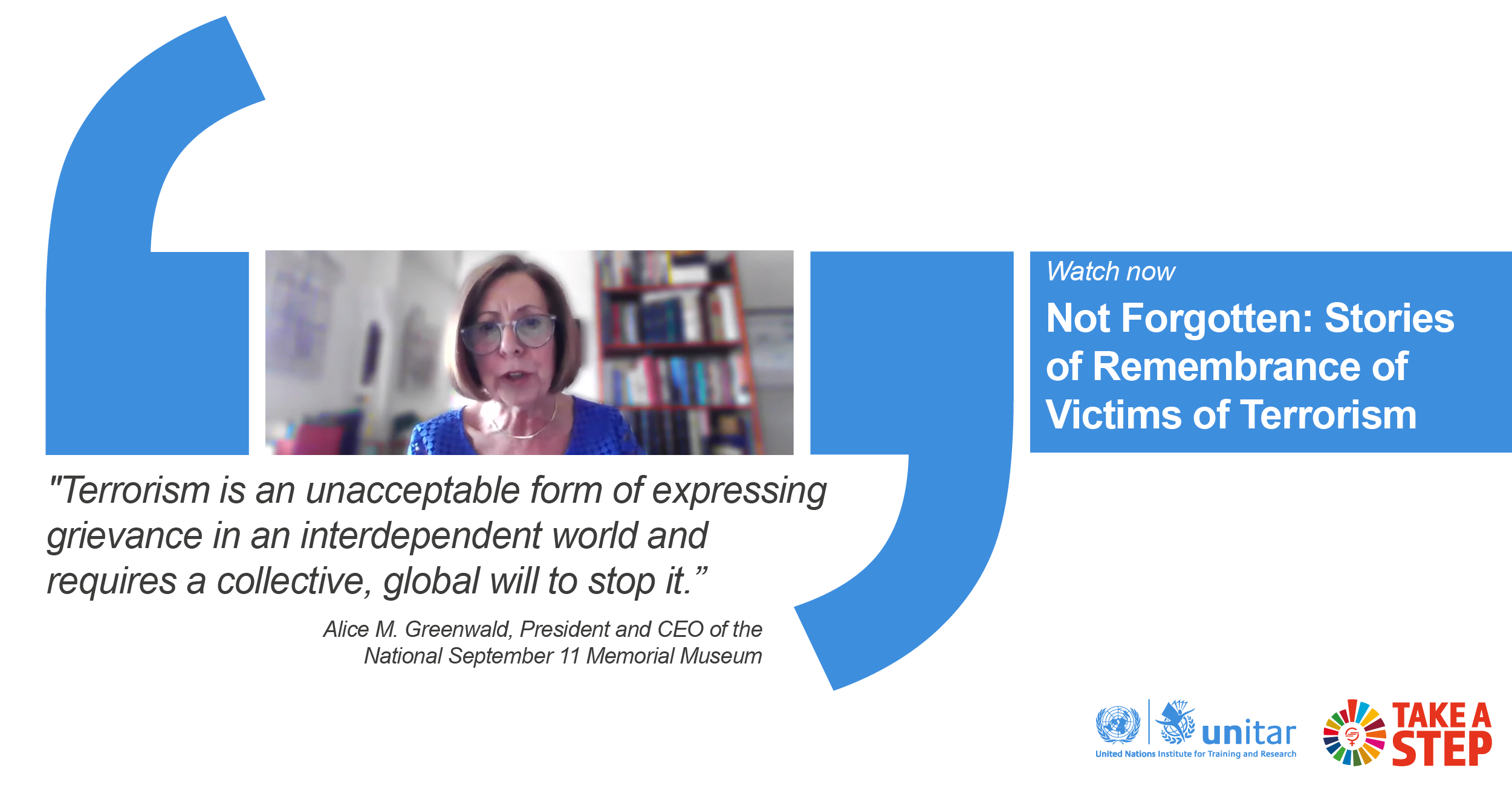 #TakeAStep today with this factsheet on gender and CVE from the UN Office of Counter-terrorism and brief remarks of Ms Alice M. Greenwald, President and CEO of the National September 11 Memorial Museum, which she delivered at the “Not Forgotten: Stories of Remembrance of Victims of Terrorism” event this past August (48:20-51:15). If memorials are the way that we make promises to the future about the past, then let us make a promise today to recognise the essential role that women play in counter-terrorism and to encourage the next generation of leaders in this field. After all, you cannot be what you don't see.