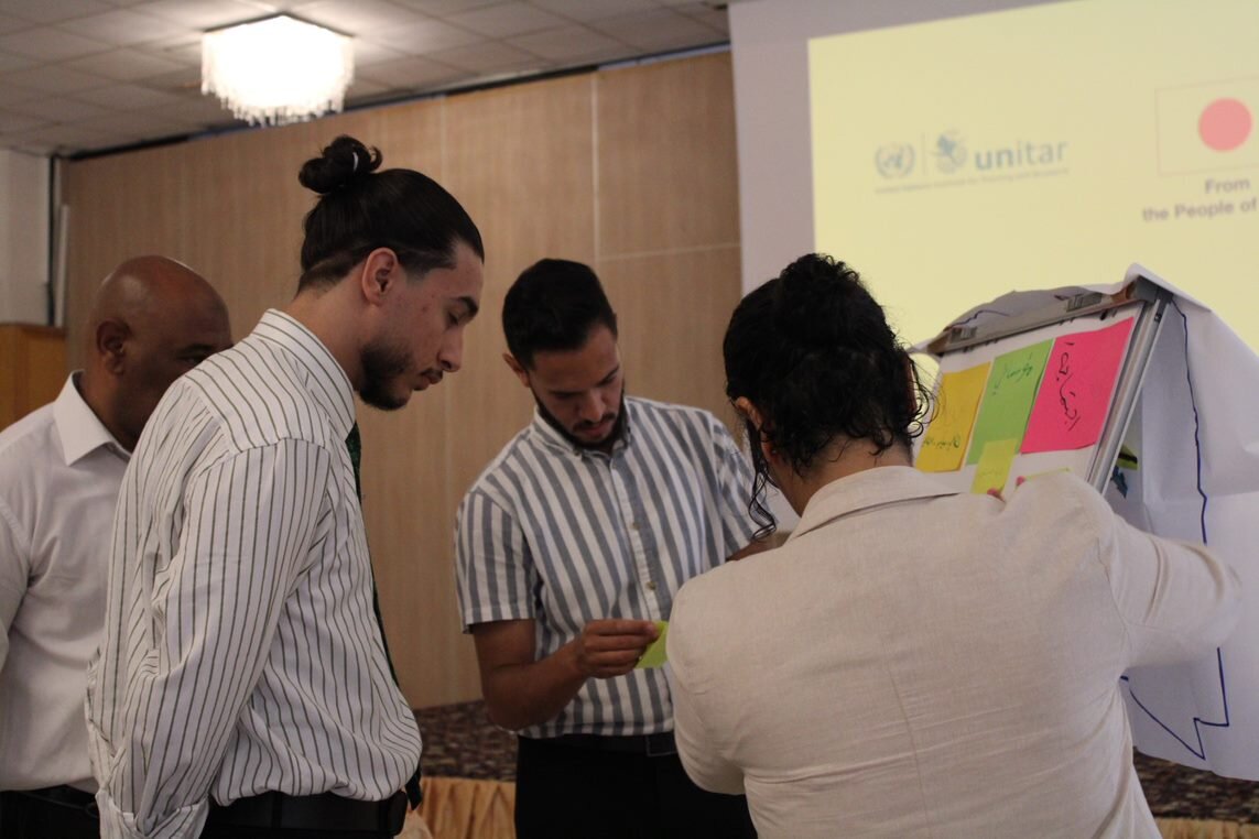 وتحقيقا لهذه الغاية، يركز المشروع على بناء القدرات التنظيمية والتقنية من خلال حلقات عمل تدريبية مصممة خصيصا لتلبية احتياجات الجهات الفاعلة على أرض الواقع. تتخلل حلقات العمل أنشطة توجيه وتدريب من شأنها أن تمكن المشاركين من تولي دورهم القيادي في حل النزاعات والصمود والمصالحة. وسيعمل معهد الأمم المتحدة للبحث والتدريب عن كثب مع شركائه على مدار العام المقبل للاستفادة من التغيير وتحقيق نتائج من شأنها أن تخدم السلام في ليبيا