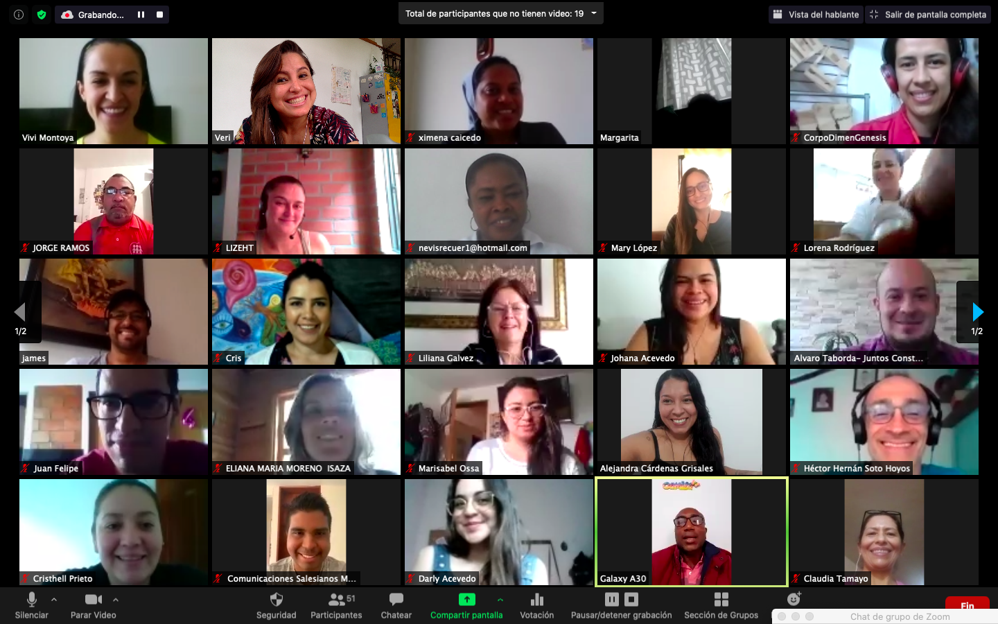 La pandemia COVID-19 ha tenido un severo impacto en la sociedad colombiana con un bloqueo continuo en la mayoría de los departamentos del país. A pesar de la suspensión casi total de las capacitaciones presenciales, el equipo del proyecto del UNITAR, junto con su principal socio del proyecto, Ciudad Don Bosco, así como la red de organizaciones implementadoras, pudo continuar las actividades del proyecto mediante la adaptación de los mecanismos de trabajo a los formatos digitales. El equipo del proyecto ha llevado a cabo cinco cursos virtuales de formación de instructores (ToT) para un total de 291 participantes. Además, los capacitadores principales previamente entrenados llevaron a cabo siete cursos virtuales de multiplicación para un total de 1479 participantes. Acaba de comenzar una capacitación de multiplicación presencial con 30 participantes. Además, el equipo del proyecto, en estrecha colaboración con todas las organizaciones participantes, realizó una evaluación de la viabilidad de la continuación de las actividades del proyecto y de la posible consecución de las medidas del proyecto en las circunstancias descritas como la "nueva normalidad". Como resultado de ello, se espera que los objetivos del proyecto se alcancen plenamente a pesar de la pandemia en curso, mediante la adaptación de los métodos de entrega, atendiendo a los diferentes niveles de acceso a Internet e incluyendo varias opciones de comunicación directa (Zoom, WhatsApp, podcasts y programación de radio).