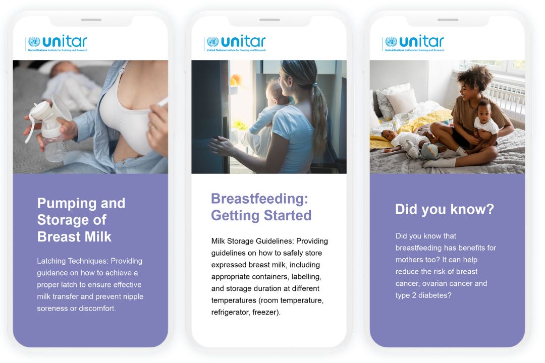 Through this initiative, UNITAR aims to contribute to facilitating breastfeeding by developing and providing a variety of educational tools that will target diverse audiences at policy, organizational, academic and community levels.