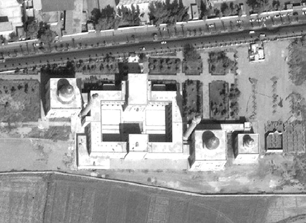 All three tombs on the outside of the shrine, their minarets and a section of the linking arcaded pricinct have been destroyed.