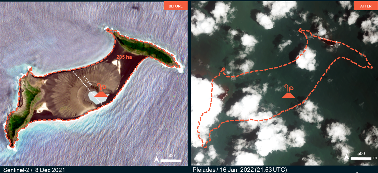 10 June 2022, Geneva, Switzerland - On Saturday 15th January, the ongoing volcanic eruption of Hunga Tonga-Hunga Ha’apai triggered a tsunami across the Pacific. Karen Melnychuck and her sister Laura Jarosz contacted the United Nations Satellite Centre (UNOSAT) with a plea to help them with any information on the island where their mother lived.