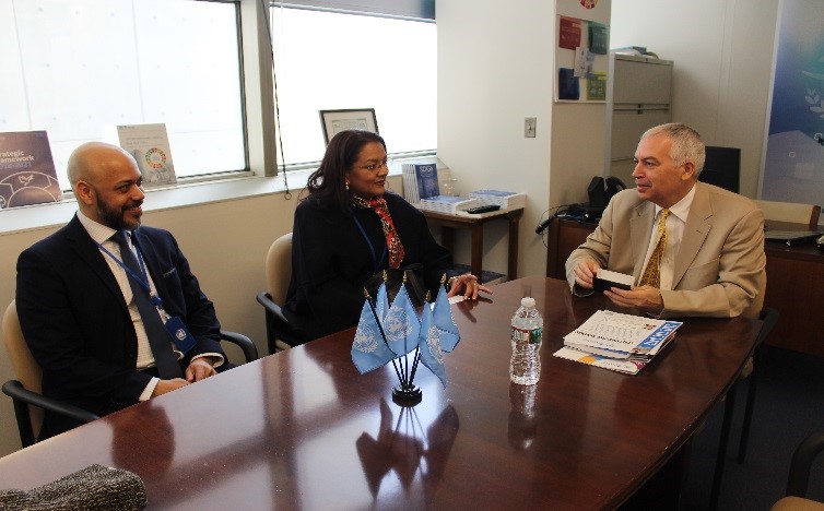 17 April 2019, New York, NY, USA - the Head of the United Nations Institute for Training and Research (UNITAR) New York Office, Mr. Marco Suazo, met with Ms. Claudia María Samayoa Herrera, Rector of the Specialized Institute of Higher Education for Training at El Salvador, and H.E. Mr. Héctor Enrique Jaime Calderón, Deputy Permanent Representative of the Permanent Mission of El Salvador to the United Nations, at UNITAR New York Office.
